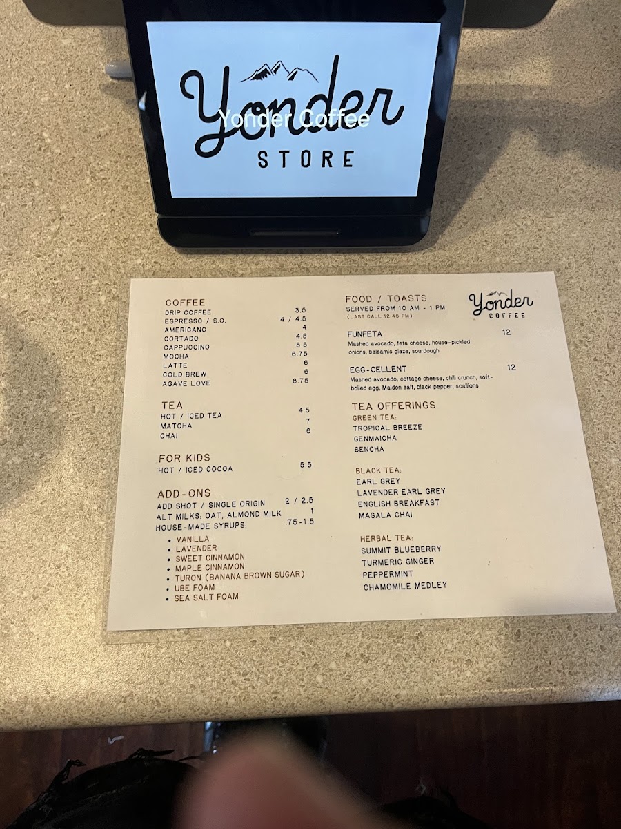Yonder Coffee Menu